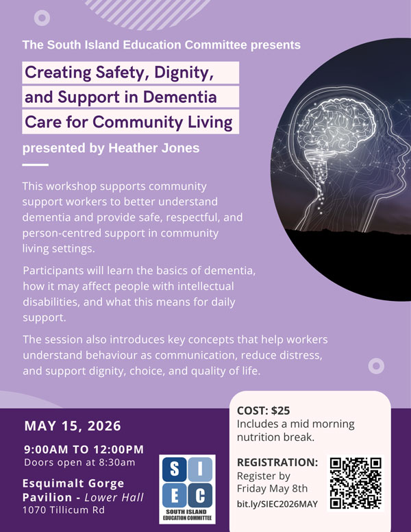 BeConnected is proud to be a part of the South Island Education Committee. Join us for our next workshop: Creating Safety, Dignity, and Support in Dementia Care for Community Living on May 15th. Spaces are limited!